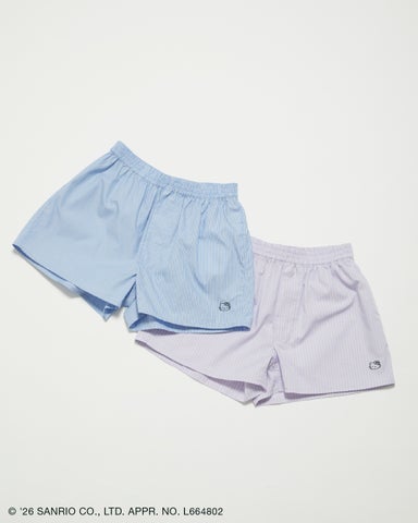 シンプルなデザインのボクサーパンツに、ハローキティの刺繍をあしらったストライプ柄のショーツです。デニムやスラックスなどのインナーとして取り入れることで、トレンド感のある着こなしが楽しめます。ルームウェアとしても着用できるアイテムです。