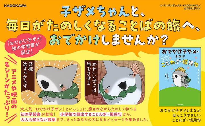 株式会社KADOKAWAは、SNS発の人気アニメ「おでかけ子ザメ」初の学習書となる『おでかけ子ザメとまなぶ ほっこりやさしいことわざ・慣用句』を2026年3月16日(月)に刊行します。子ザメちゃんと一緒にことわざや慣用句を楽しく学べる一冊です。