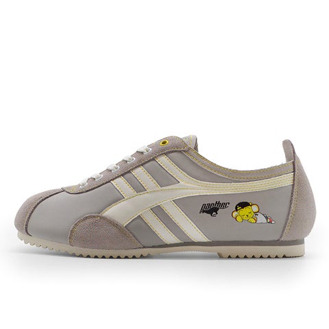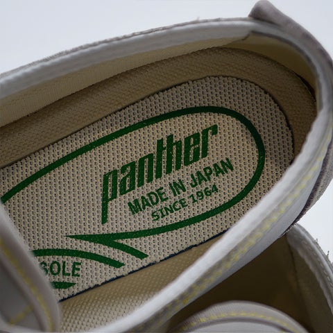 本モデルのベースとなるのは、1970年代のランニングシューズをルーツに持つ「PANTHER DERA」です。薄底でクラシックなシルエットが特徴で、レトロスニーカーとして多くの支持を集めています。さらに、快適な履き心地を実現するため、軽量で歩きやすいEVAソール、オーソライト社製フットベッド、そして日本製による高い品質を採用しています。