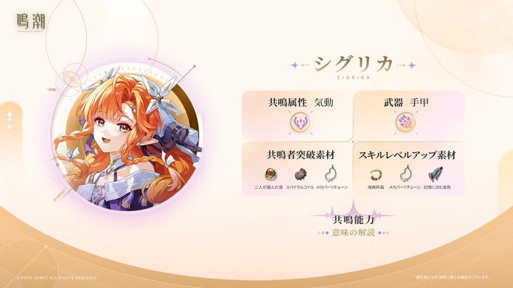 アップデート前半の限定ガチャには、新限定星5共鳴者「シグリカ」が登場します。