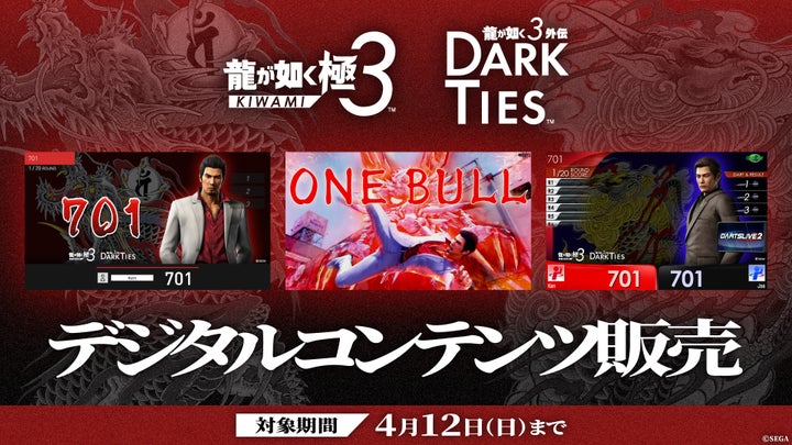 「ダーツライブ×『龍が如く 極3 / 龍が如く3外伝 Dark Ties』コラボキャンペーン」の詳細や、『龍が如く 極3 / 龍が如く3外伝 Dark Ties』のゲーム情報については、以下の公式サイトで確認できます。