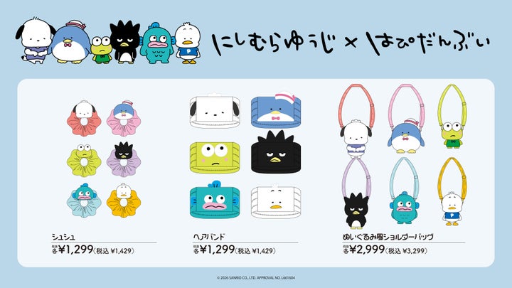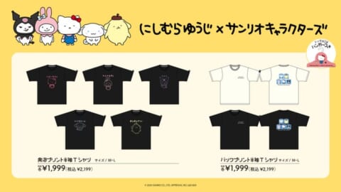 「にしむらゆうじ×サンリオキャラクターズ」のコラボアイテムは、以下の通り発売します。