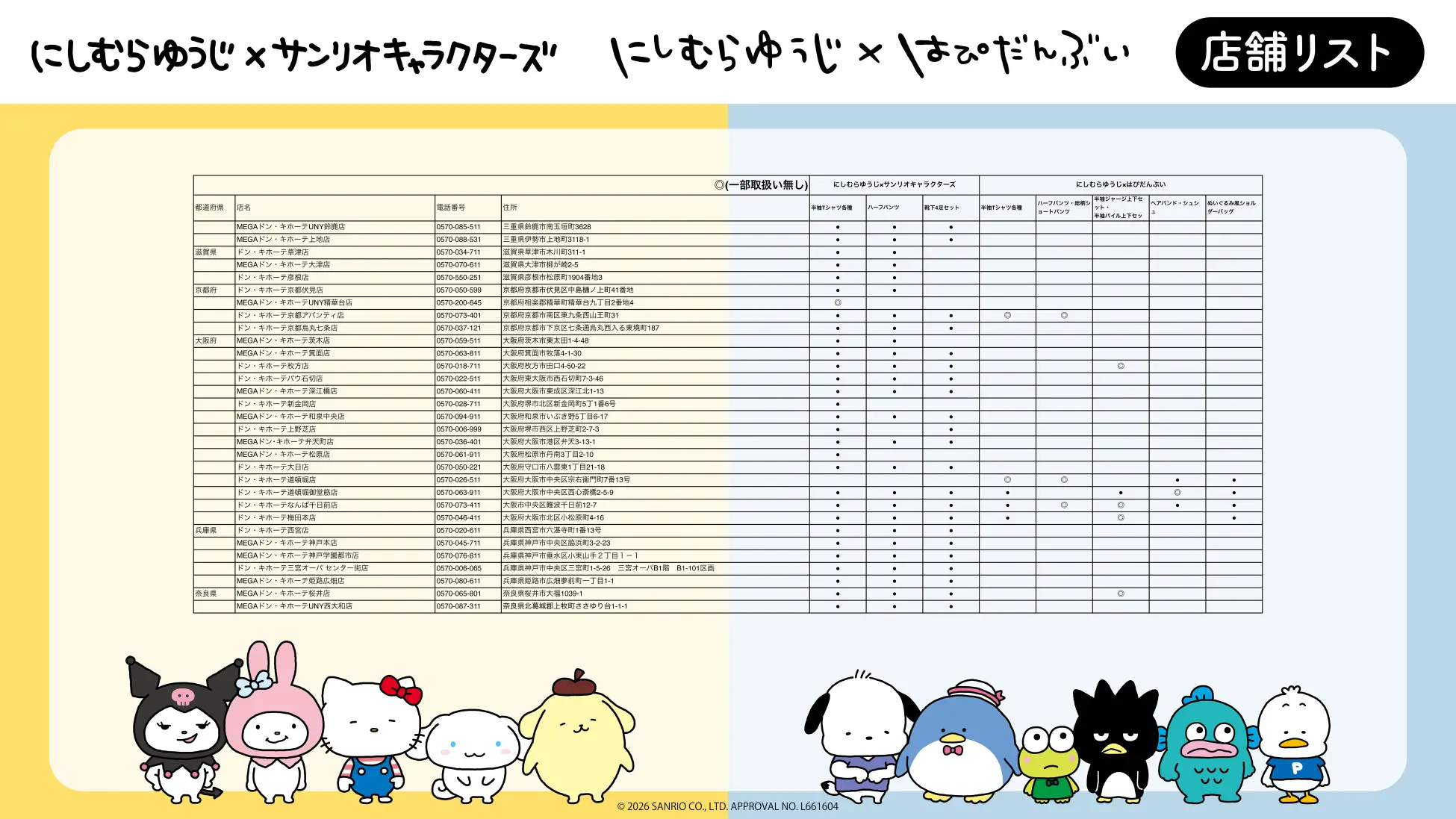 にしむらゆうじ×サンリオキャラクターズ ドン・キホーテ販売概要