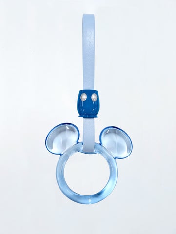 車内はジュビリーブルーを基調とし、キャラクターや華やかな装飾で彩られています。つり革も25周年仕様のデザインに変更し、きらめきに満ちた空間を演出します。