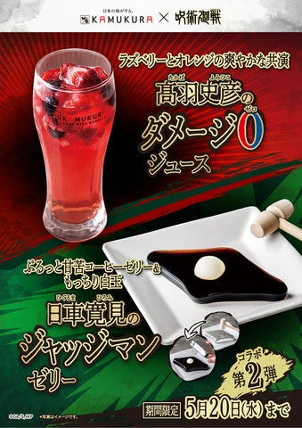 • 特徴: 日車寛見の領域展開「誅伏賜死」に現れる式神「ジャッジマン」をモチーフに、ガベルをイメージした木槌で叩いてコーヒーゼリーを出していただけるユニークな一品です。無くなり次第終了します。