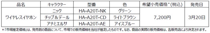 株式会社JVCケンウッドは、Victorブランドとディズニーストアの共同企画第三弾として、ディズニーキャラクター「ニック」「チップ&デール」「アナとエルサ」をデザインした完全ワイヤレスイヤホン計3モデルを、3月20日より発売します。
