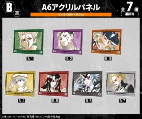 TVアニメ「Dr.STONE」のオンラインくじ「Ani-Art第3弾」では、以下の魅力的な景品を用意しています。