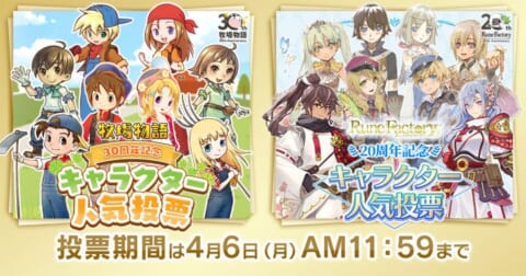 株式会社マーベラスは、「牧場物語」シリーズ30周年と「ルーンファクトリー」シリーズ20周年を記念し、新規描き下ろしイラストの公開と、両シリーズ合わせて総勢560名が対象のキャラクター人気投票を開催します。