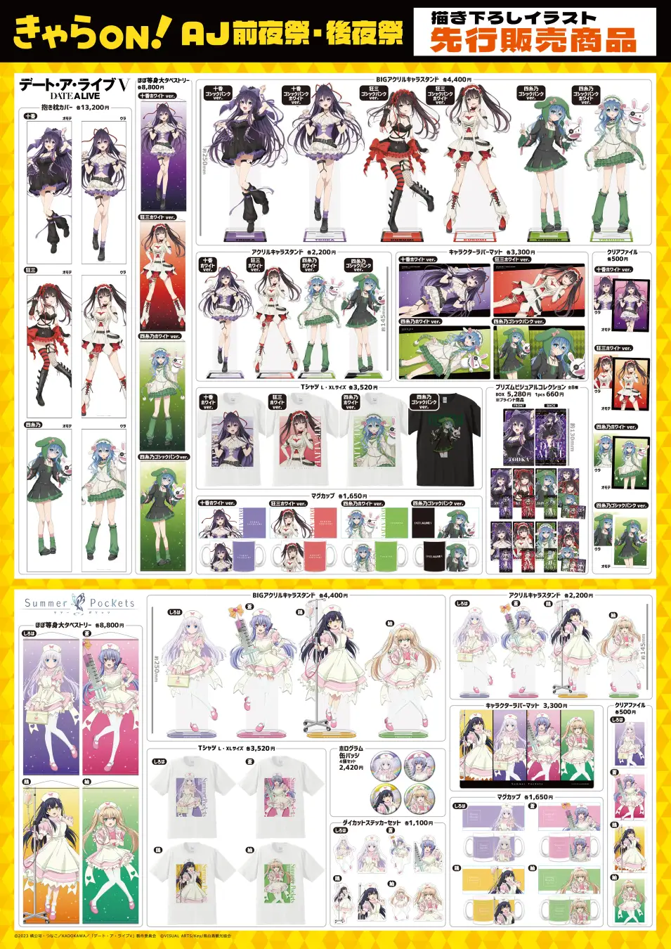 先行販売される描き下ろし商品では、人気作品のキャラクターが様々な衣装テーマで登場します。