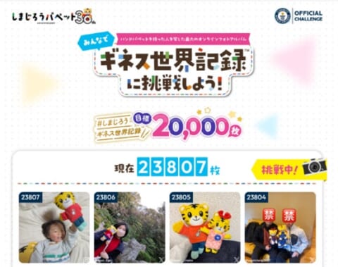 - 記録達成内容: 『しまじろうパペット』を持った写真2万枚をオンラインアルバムに集積