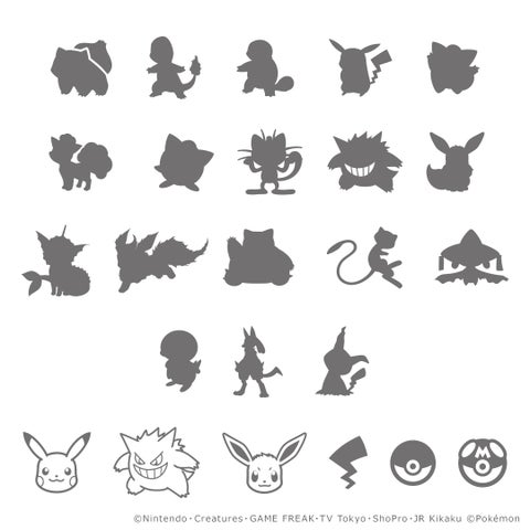 フシギダネ、フシギバナ、ヒトカゲ、リザードン、ゼニガメ、カメックス、ピカチュウ、ピッピ、ロコン、プリン、ニャース、ヤドン、ヤドラン、ゲンガー、コイキング、ギャラドス、ラプラス、メタモン、イーブイ、シャワーズ、サンダース、ブースター、カビゴン、カイリュー、ミュウツー、ミュウ、チコリータ、ヒノアラシ、ワニノコ、ピチュー、メリープ、マリル、エーフィ、ブラッキー、ソーナンス、キモリ、アチャモ、ミズゴロウ、メガサーナイト、ラティアス、ラティオス、ジラーチ、ナエトル、ヒコザル、ポッチャマ、ルカリオ、グレッグル、リーフィア、グレイシア、メガエルレイド、ツタージャ、ポカブ、ミジュマル、ハリマロン、フォッコ、ケロマツ、ゲッコウガ、カエンジシ(オスのすがた)、カエンジシ(メスのすがた)、フラベベ、フラエッテ、ニャスパー、ペロッパフ、エリキテル、ニンフィア、デデンネ、ヌメラ、クレッフィ、バケッチャ、ジガルデ・コア、ジガルデ(10%フォルム)、ジガルデ(50%フォルム)、ディアンシー、モクロー、ニャビー、アシマリ、キテルグマ、ミミッキュ、サルノリ、ヒバニー、メッソン、ニャオハ、ホゲータ、クワッス、モンスターボール、スーパーボール、ハイパーボール、マスターボール