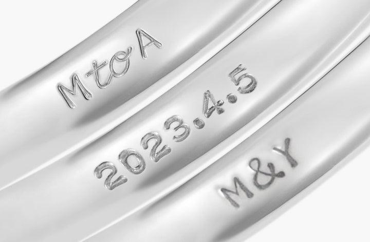 サイズは6号から19号まで選択可能です。刻印はアルファベット大文字、数字、.(ドット)、&、toを組み合わせて最大8文字まで刻印ができます。
