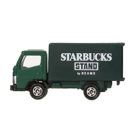 日本を代表するダイキャスト製ミニカーのトミカとコラボレーションし、STARBUCKS STAND by BEAMS特別モデルのミニカーが誕生しました。ビームスの物流で使用される「三菱ふそう キャンター」をベースに、車体全体をグリーンに塗装しています。荷台の左右側面には、STARBUCKS STAND by BEAMSロゴとサイレンロゴを配した、限定デザインのトラックです。