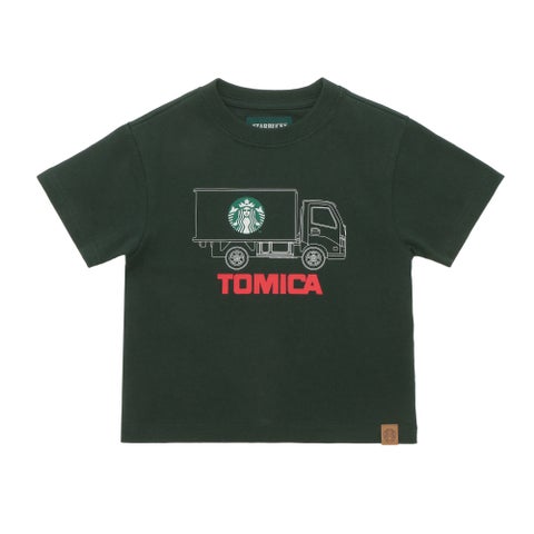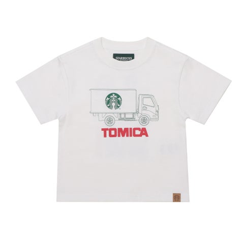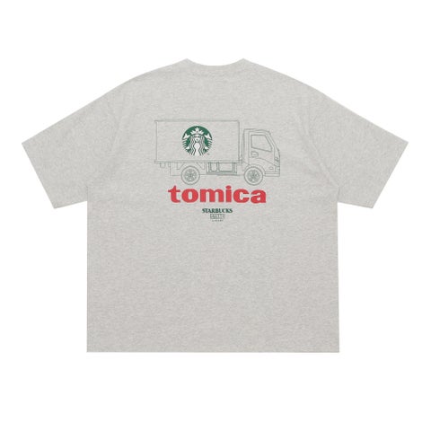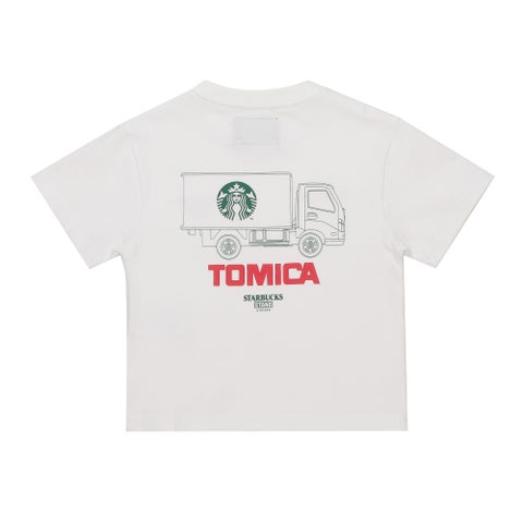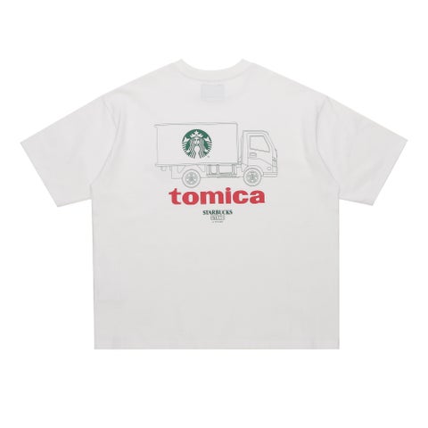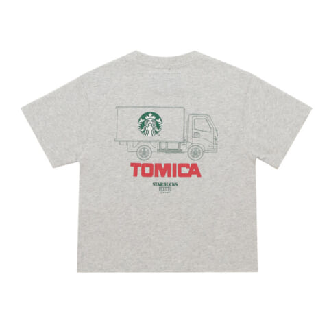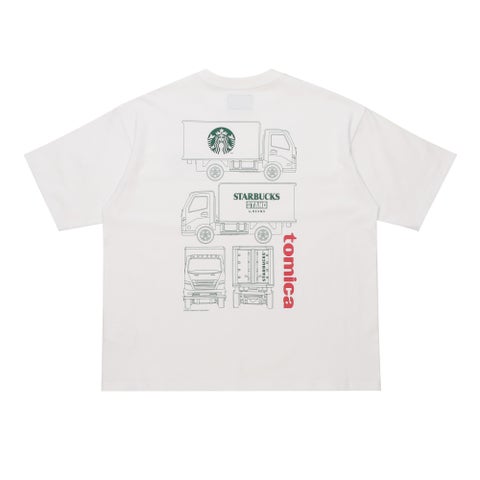 STARBUCKS STAND by BEAMSの定番Tシャツをベースに、トミカらしい遊び心あふれるトラックのプリントを施しました。バックプリントには、トラックをさまざまなアングルから描いたグラフィック(TシャツA)や、大胆に描いたグラフィック(TシャツB)を使用しています。