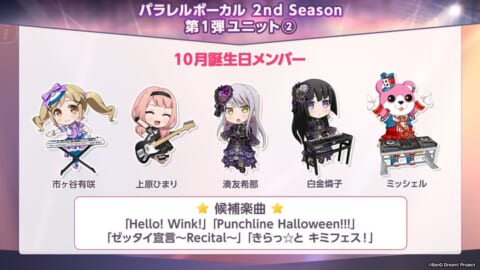 10月誕生日メンバーユニット: 市ヶ谷有咲、上原ひまり、湊友希那、白金燐子、ミッシェル