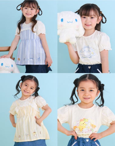 今回のコラボレーションでは、「シナモロール」と「ポムポムプリン」それぞれの世界観をカラーとシルエットで表現したキッズコレクションを展開します。ふんわりと軽やかな素材感と、思わず笑顔になるディテールが魅力です。毎日のコーディネートがもっと楽しくなるようなラインナップに仕上げました。