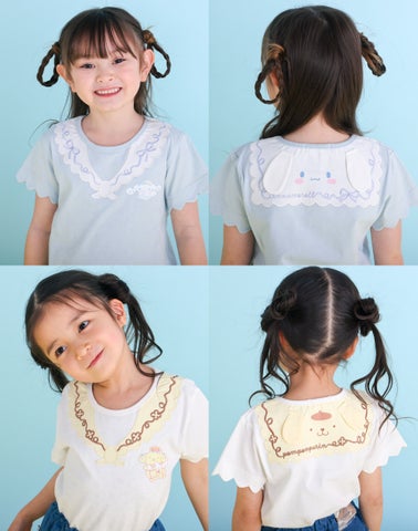 【シナモロール/ポムポムプリン×SLAPSLIP】袖スカラップ耳付きセーラー襟風Tシャツ