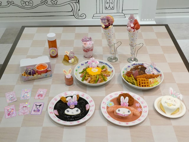 - マイメロディのハムカツピンクカレー: ピンク色がキュートで、まろやかでありながらもスパイシーなカレーに肉厚なハムカツを添えた一品です。