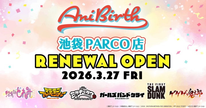 東映アニメーションの公式グッズショップ「AniBirth池袋PARCO店」が、2026年3月27日(金)に5Fから6Fへ移転し、リニューアルオープンします。これに伴い、記念キャンペーンと新商品の販売を開始します。