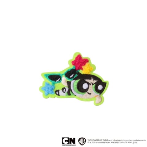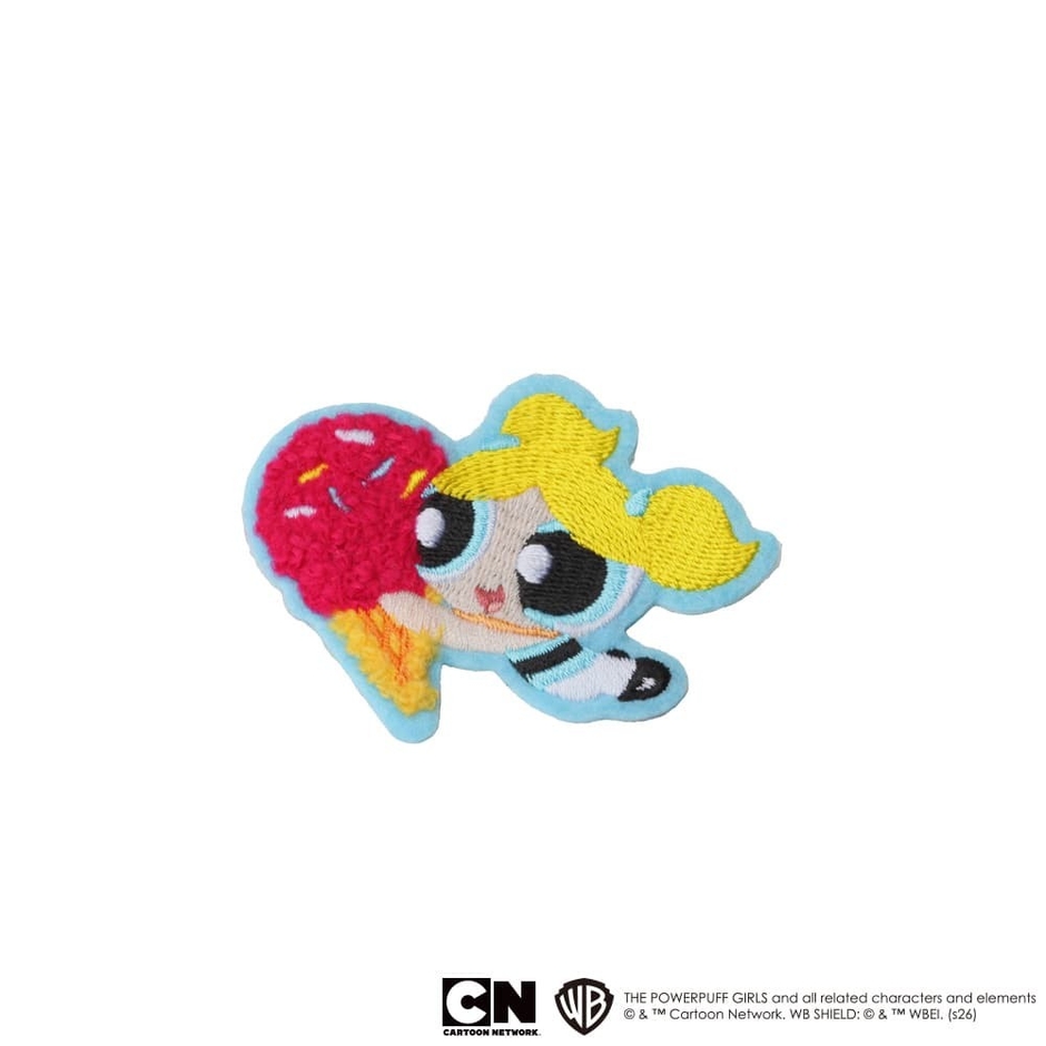 『サガラステッカー』は、もこもこのサガラ刺繍が特徴です。独特のボリューム感と温かみのある質感が、パワーパフ ガールズのキャラクターの可愛さを一層引き立てます。