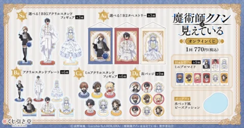 TVアニメ「魔術師クノンは見えている」のオンラインくじに関する詳細情報や購入手続きは、「くじ引き堂」の公式サイトにてご確認ください。最新情報は公式Xアカウントでも発信しています。