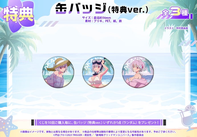 くじを10回購入するごとに、【缶バッジ(特典ver.)】いずれか1点(ランダム)をプレゼントします。