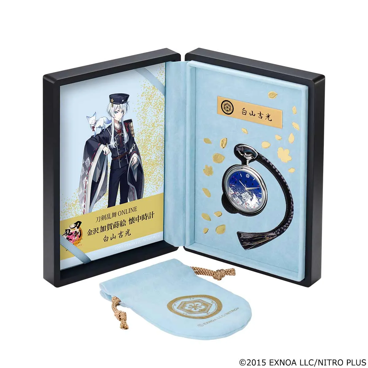 PCブラウザ・スマホアプリゲーム「刀剣乱舞ONLINE」に登場する刀剣男士をイメージした、金沢加賀蒔絵の懐中時計です。