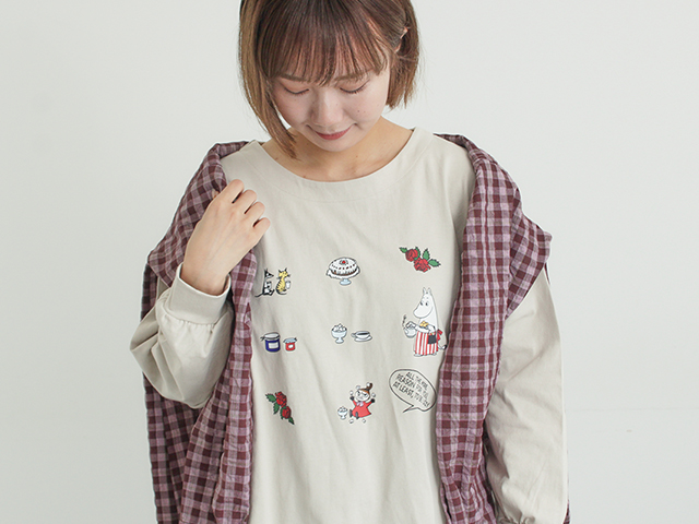 限定アイテム:ぽこぽこ刺繍Tシャツ(ムーミンデザイン)