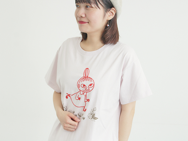 定番人気の刺繍Tシャツに、リトルミイがお花畑を元気に走っているようなデザインが施されました。