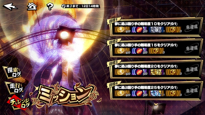 新たなパレスの探索やボスバトルに挑戦し、契約に使える「ゴールドチケット」や「プラチナミリコイン」などの豪華報酬を手に入れる機会です。イベント期間終了後も、一部を除き継続してプレイ可能です。