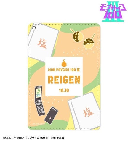 影山茂夫、霊幻新隆をイメージしたモチーフ、キャラクターカラー、香りのイメージに合った色味を取り入れた1ポケットパスケースです。社員証や名刺を入れるのに最適なクリア窓付き1ポケットタイプで、便利なリールストラップ付きです。通勤通学など、日常生活の様々なシーンで活用できます。