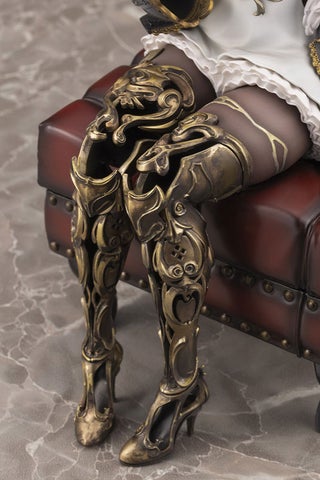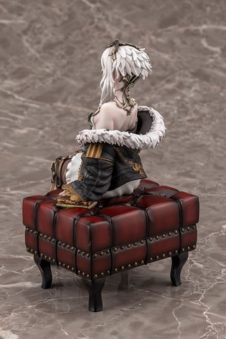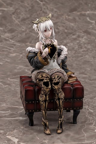 人気ゲーム『CODE VEIN II』から、ヒロイン「ルゥ・マグメル」が1/7スケールフィギュアとして登場します。本を片手にリラックスして座る姿を立体化しました。アンティークなスツールを模した台座は、ゲームの世界観を忠実に再現し、高級感を演出しています。