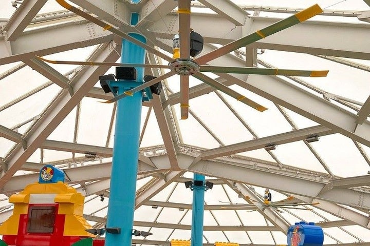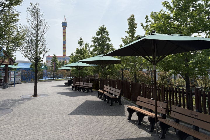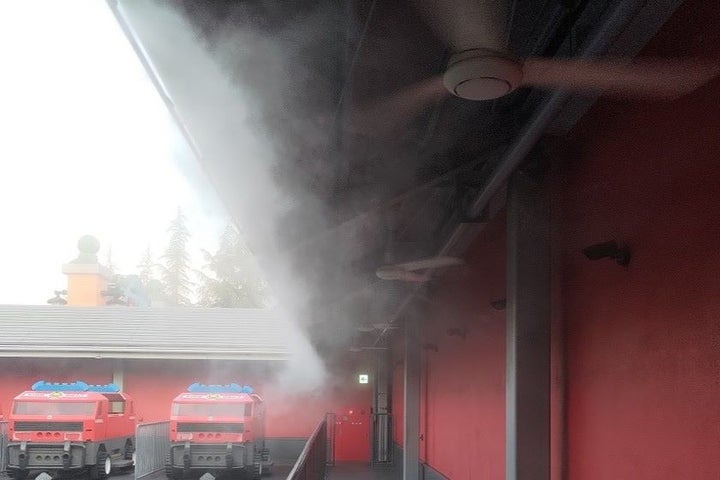 レゴランドⓇ・ジャパン・リゾートでは、小さなお子さまを持つ家族が安心して楽しめるよう、暑さ緩和対策に取り組んでいます。直径約5mの巨大ファンをはじめ、パーク内各所に大型パラソルやミストを設置しています。また、スタッフの安全確保のため、定期的な水分補給やファンベスト、冷却アイテムの着用など対策を講じています。