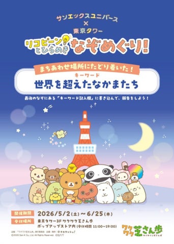 2026年5月2日より「サンエックスユニバース×東京タワー ワクワク芝さん歩」が開催されます。約260点の限定グッズ販売や宝探しイベントなど、詳細情報を発表しました。