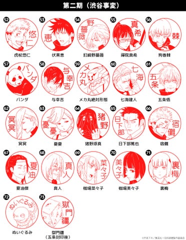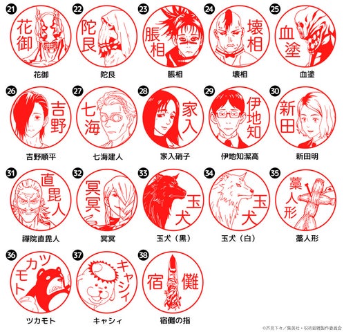 アニメ『呪術廻戦』のキャラクター入りオーダーメイドはんこ「呪術廻戦 はんこコレクション」に、アニメ第3期「死滅回游」のキャラクター16種類をデザインした新作「セルフインクタイプ」が登場しました。