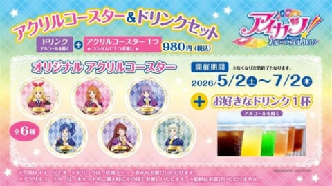 2026年5月2日(土)より、「アイカツ!シリーズ」と「バンダイナムコ Cross Spot」の期間限定コラボイベントを開催します。オリジナル描き下ろしイラストを使用したアクリルコースター付きドリンクセットの販売に加え、アイカツ!シリーズのオリジナルグッズも多数展開。本イベントの開催内容や参加方法を詳しくご紹介しますので、ぜひ参考にしてください。