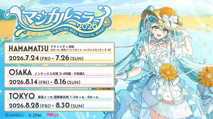 初音ミク「マジカルミライ 2026」の各会場にて、オフィシャルグッズとして販売されます。