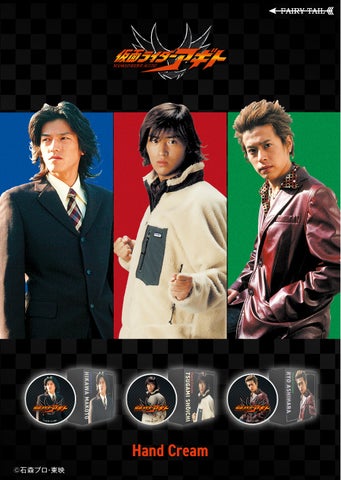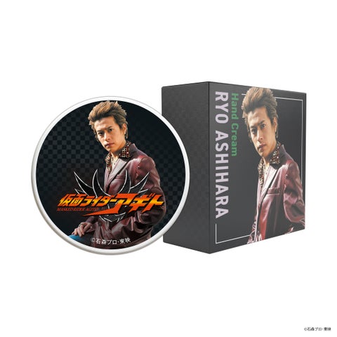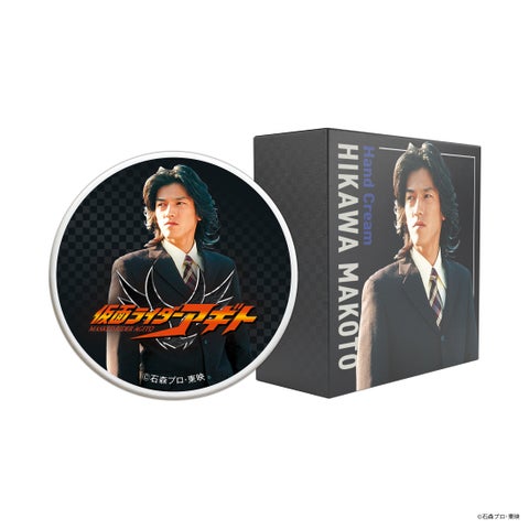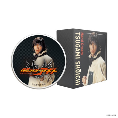 津上翔一、氷川誠、葦原涼の3種類のハンドクリームが登場します。馬油が配合され、もっちりとした使用感で素早く浸透し、高い保湿力で乾燥をケア。心地よい香りと共に、うるおいに満ちた柔らかな手肌へと導きます。パッケージと容器には、放送当時の肖像が特別仕様として使用されています。