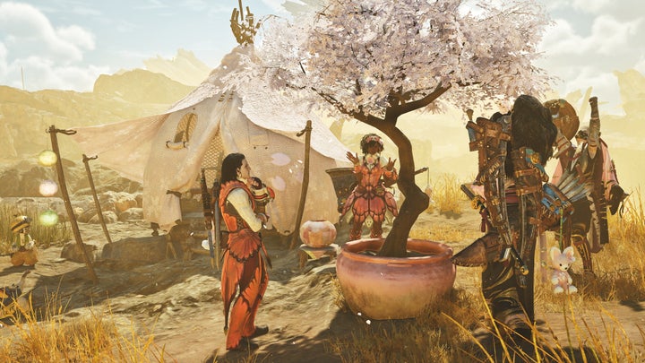 現在、『モンスターハンターワイルズ』では季節イベント「交わりの祭事【花舞の儀】」も開催されています。大集会所では華やかな祭りが催され、装飾や食事が変化するほか、限定の装備やジェスチャー、簡易キャンプの装飾などを入手できます。