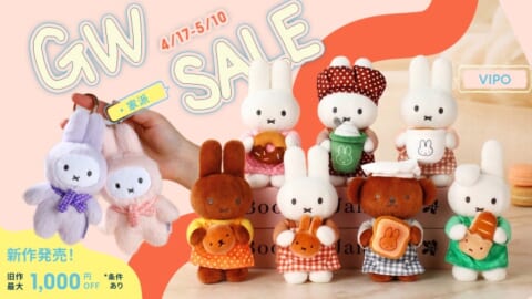 Pinkoiにて、VIPOのミッフィーシリーズから新作「ベーカリーシリーズ」が登場しました。ミッフィーや仲間たちがパンやコーヒーを手にした愛らしいデザインで、全7種類のコレクションを展開。ゴールデンウィークキャンペーンの対象にもなります。