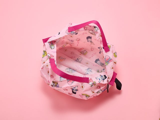 今回の『Shupatto コンパクトバッグ』は、不朽の名作「ベルサイユのばら」を作者の池田理代子先生自らがセルフパロディ化した漫画「ベルばらKids」のデザインを採用しています。人気の高いオスカル、アンドレ、マリー・アントワネットなどが、3頭身のかわいらしいキャラクターとして描かれたデザインです。