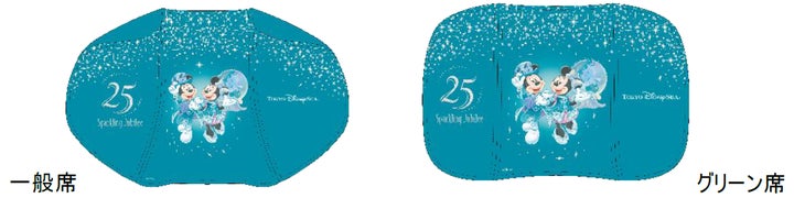 JR東日本の新幹線では初めて、座席の枕に装飾が施されます。これに加え、座席カーテンや車内ステッカーにも装飾を施し、車内全体が祝祭感あふれる特別仕様となります。車内メロディでも「東京ディズニーシー25周年“スパークリング・ジュビリー”」の雰囲気を感じながら、新幹線の旅を楽しめます。