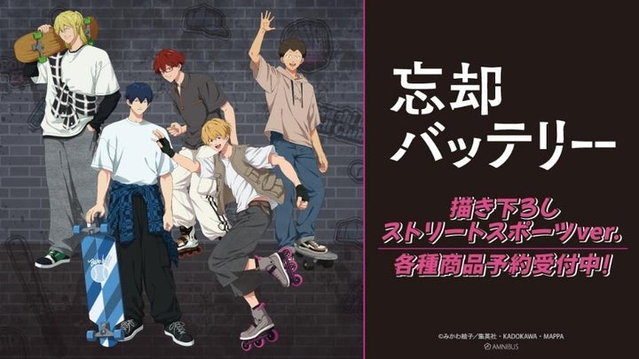 TVアニメ「忘却バッテリー」の新作グッズが、通販サイト「AMNIBUS」にて受注販売を開始しました。描き下ろしイラスト「ストリートスポーツver.」をメインとした全11種類のアイテムが登場します。