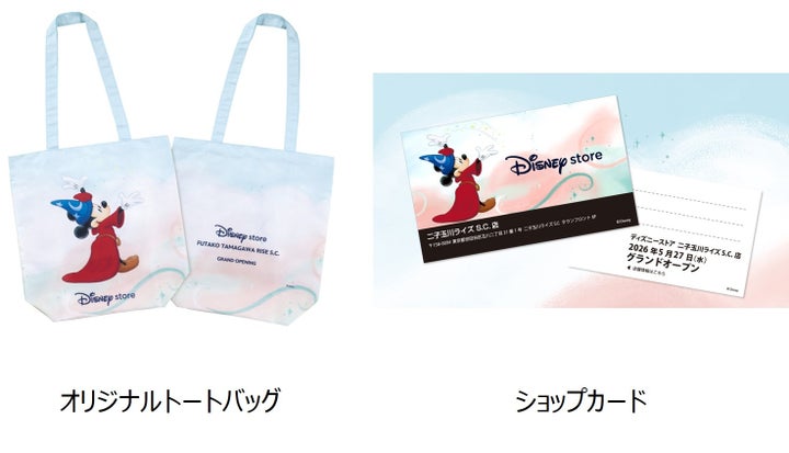 5,000円(税込)以上購入すると、二子玉川ライズ S.C.店限定デザインのオリジナルトートバッグをプレゼントします。また、店内では希望者に二子玉川ライズ S.C.店限定のショップカードをプレゼントします。詳細はディズニーストアキャストに確認してください。これらのキャンペーンは2026年5月27日(水)から開始し、なくなり次第終了します。