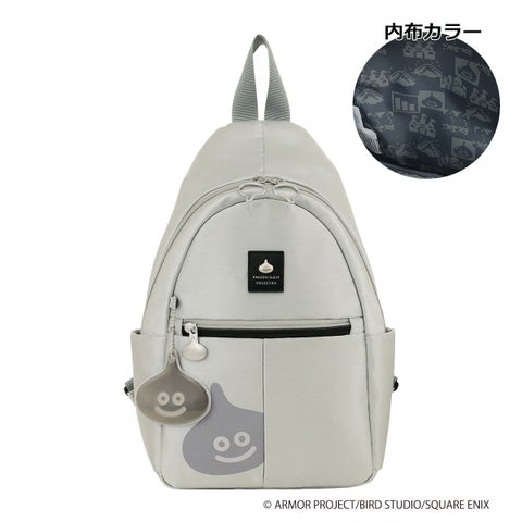 コンパクトながら、スマートフォンや財布などの小物を収納できます。フロントのスライムプリントと引手のスライムモチーフが特徴です。おでかけやイベント、旅行のサブバッグとして活用できます。