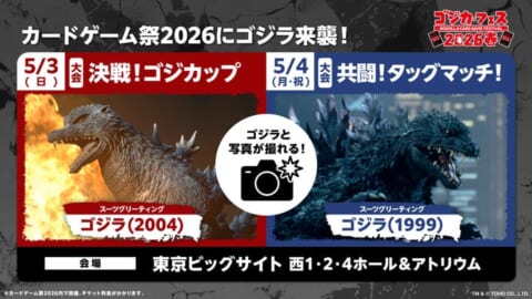 2026年5月3日(日・祝)および5月4日(月・祝)に東京ビッグサイト西1・2・4ホール&アトリウムで開催される「カードゲーム祭2026」内で、「ゴジカ・フェス2026春」を開催します。