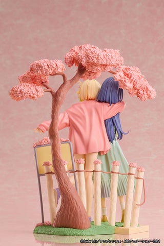 本フィギュアは、TVアニメ『リコリス・リコイル』のBlu-ray&DVD第1巻ジャケットイラストを元に立体化されています。楽しそうに肩を組む錦木千束と、控えめにピースをする井ノ上たきなの姿を可愛らしく再現した点が特徴です。台座には、イラストで象徴的に描かれている桜の木や看板も忠実に再現されています。春らしい雰囲気が漂うデザインで、360度どこから見ても楽しめるフィギュアです。