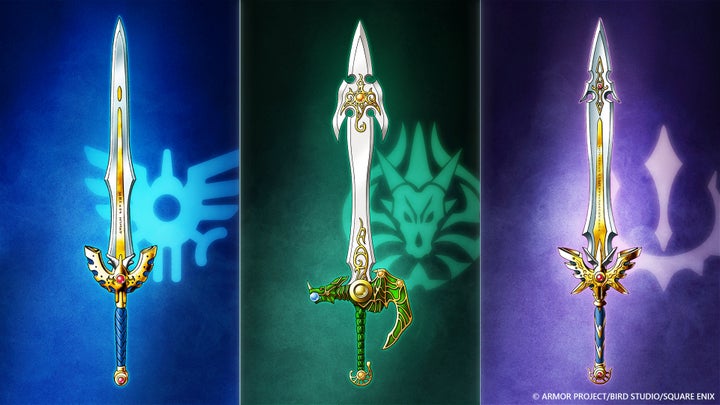 特別チケットの限定特典にもなっている伝説の剣 特製ピンバッジ 3種セットに関連し、ロトの剣、天空の剣、勇者の剣・改の原寸大オブジェを展示します。会場で実物をご覧いただけます。