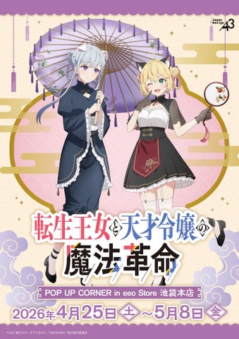 TVアニメ『転生王女と天才令嬢の魔法革命』の新作グッズが「eeo Store online」および「eeo Store 池袋本店」で登場しました。ケモ耳&中華ロリータ姿のアニスフィアとユフィリアの描き下ろしイラストを使用しています。