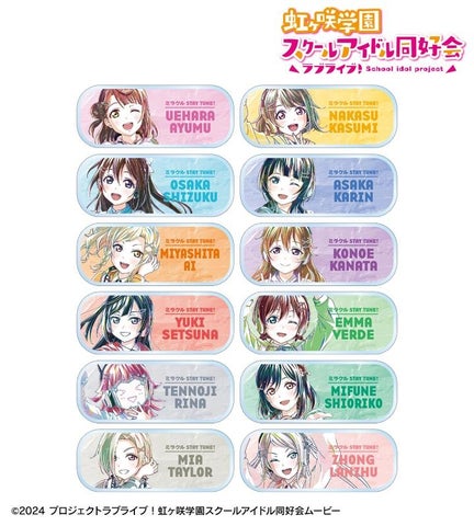 今回の新作グッズは、上原歩夢、中須かすみ、桜坂しずく、朝香果林、宮下 愛、近江彼方、優木せつ菜、エマ・ヴェルデ、天王寺璃奈、三船栞子、ミア・テイラー、鐘 嵐珠の12名の描き下ろしイラストが使用されています。